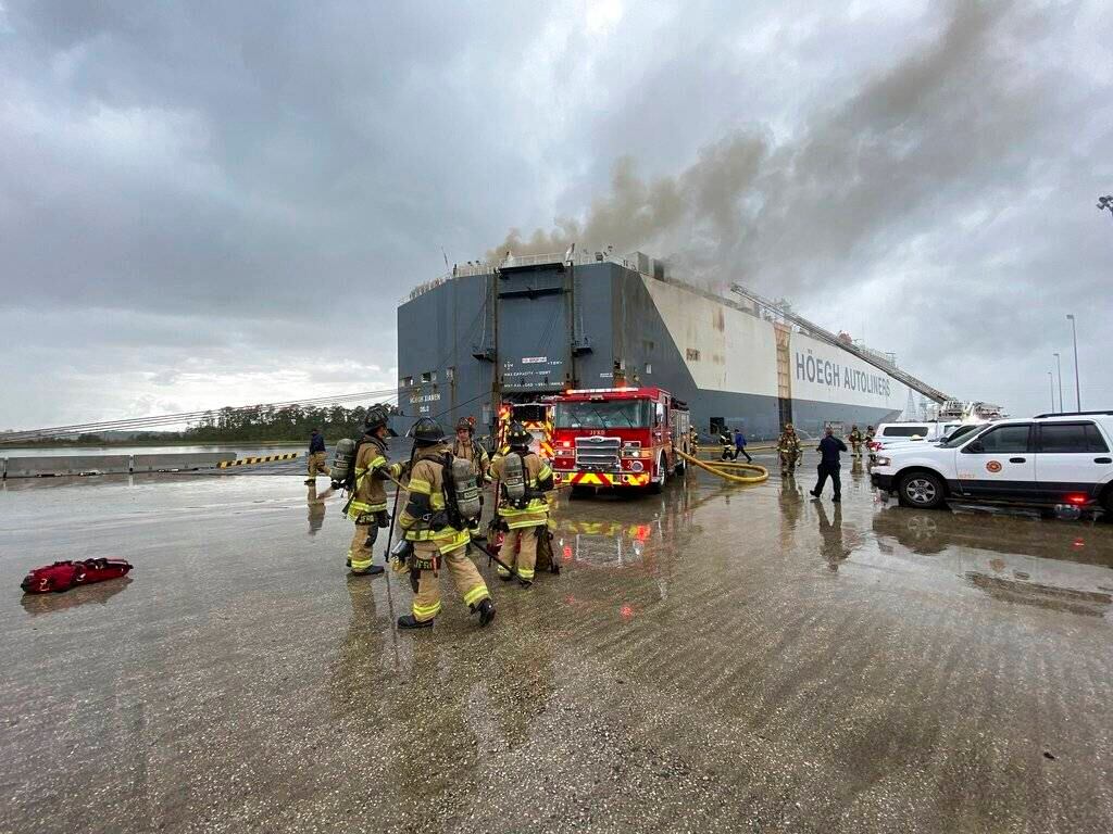 El barco noruego Hoegh Xiamen transportaba autos viejos y usados y tenía programado salir de Jacksonville, reportó First Coast News.