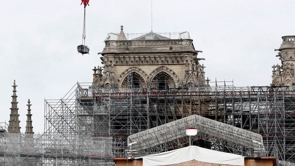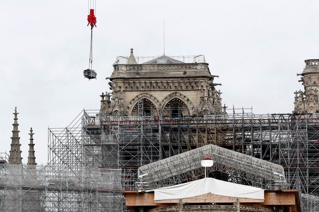 Las operaciones comenzaron por la mañana para desmantelar andamios que habían sido colocados antes del incendio del 15 de abril de 2019 para reparar las antiguas estructuras.