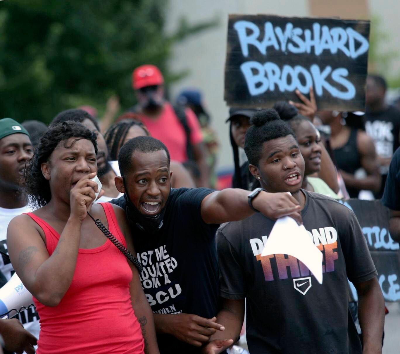 Entre los manifestantes iba Crystal Brooks, quien dijo ser cuñada de Rayshard Brooks. “No le estaba haciendo daño a nadie”, dijo. “La policía se dirigió al vehículo y aunque estaba estacionado lo sacaron y comenzaron a forcejear con él”.