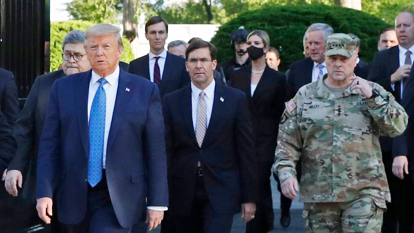 Las declaraciones de Milley fueron a una expresión extraordinaria de arrepentimiento por parte del principal asesor militar de Trump. Milley dijo que su presencia en la caminata condujo a la percepción de que los militares se estaban inmiscuyendo en política, lo que en su opinión, al igual que la de Esper, es una amenaza para la democracia.