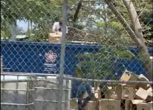 En el video publicado por el León Fiscalizador, se ve un grupo de empleados abriendo las cajas dejando caer todos los alimentos del interior en el interior del contenedor de basura.