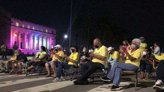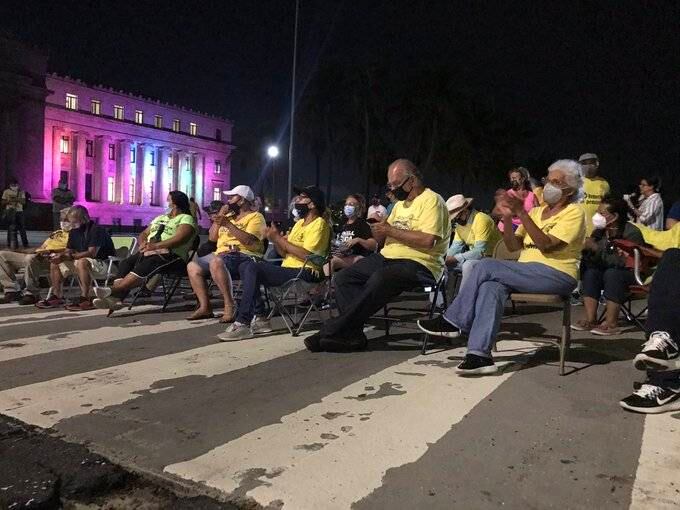 Un grupo de personas pensionadas se agruparon hoy frente a El Capitolio para realizar desobediencia civil para exigir que se apruebe la Ley de Retiro Digno.