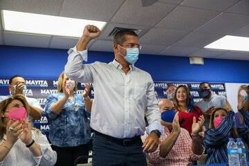 En el lugar le acompañaban la comisionada residente y candidata a reelección, Jenniffer González, el presidente de la Cámara, Carlos Johnny Méndez, entre otros líderes políticos.