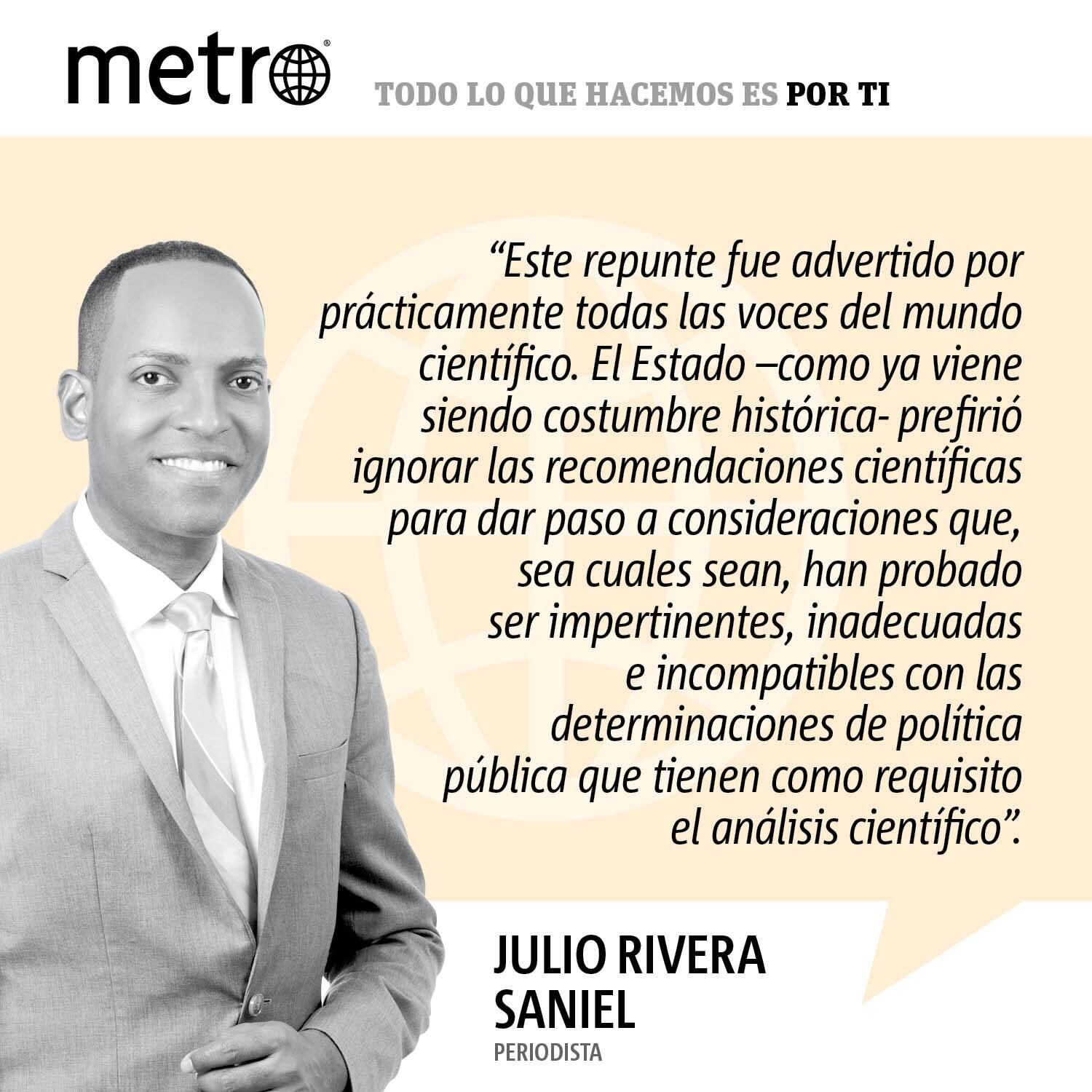 Entonces, con total sinceridad, ¿es posible que alguien en su sano juicio se sorprenda de que enfrentamos un repunte en los contagios? ¿A caso alguien esperaba que haciendo todo lo que no se pidió hacer habría un resultado distinto? Aquí puede haber espacio para la sorpresa. Este repunte fue advertido por prácticamente todas las voces del mundo científico. El Estado –como ya viene siendo costumbre histórica- prefirió ignorar las recomendaciones científicas para dar paso a consideraciones que, sea cuales sean, han probado ser impertinentes, inadecuadas e incompatibles con las determinaciones de política pública que tienen como requisito el análisis científico.