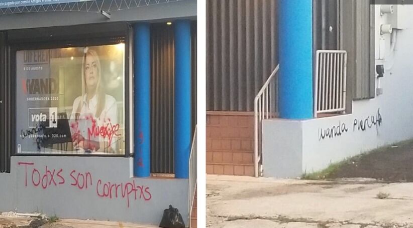 Durante la mañana de hoy, miércoles, el comité de la gobernadora Wanda Vázquez Garced amaneció vandalizado con varios mensajes en sus paredes.