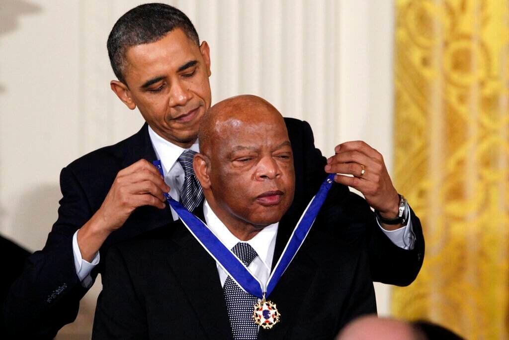 En un temprano revés para la campaña de primarias de Barack Obama en 2008, Lewis respaldó la candidatura de Hillary Rodham Clinton a la nominación demócrata. Lewis cambió de parecer cuando quedó claro que Obama tenía un apoyo abrumador entre los afroestadounidenses. Más tarde, el presidente distinguió a Lewis con la Medalla Presidencial de la Libertad y marcharon juntos en el 50mo aniversario del Domingo Sangriento en Selma.