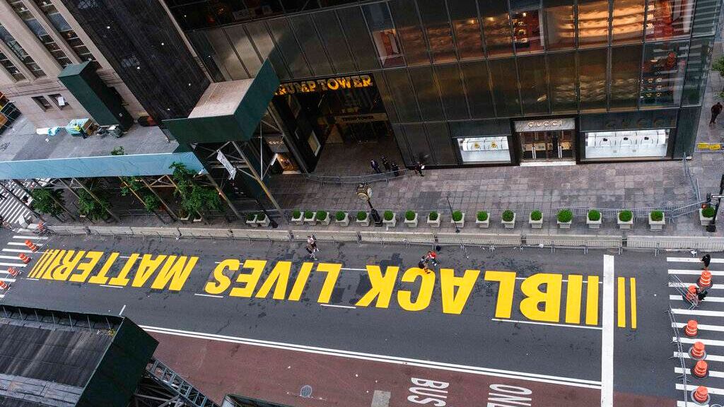 Las palabras “Black Lives Matter” han sido pintadas con letras grandes en varias calles de Nueva York y otros lugares en las últimas semanas para mostrar apoyo al movimiento que exige justicia y reformas después de las muertes de George Floyd y otros hombres negros a manos de la policía.