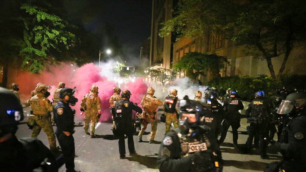 “Estamos tratando de ayudar a Portland, no lastimarla”, tuiteó Trump el domingo. “El liderazgo de la ciudad desde hace meses ha perdido el control de los anarquistas y agitadores, están desaparecidos en acción. Debemos proteger a la propiedad Federal Y A NUESTRA GENTE. ¡Estos son simples manifestantes, son peligrosos de verdad!”.