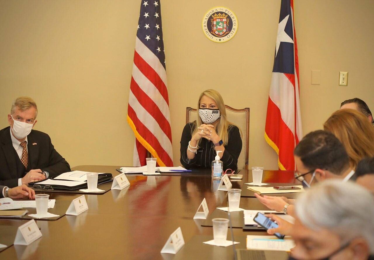 La gobernadora Wanda Vázquez Garced y varios jefes de agencias se reunieron esta mañana con el contralmirante Peter Brown, representante especial de la Casa Blanca en Puerto Rico, para presentar los adelantos en los proyectos y obras que se están trabajando con los fondos federales para la revitalización de Puerto Rico tras el paso de los huracanes Irma y María.