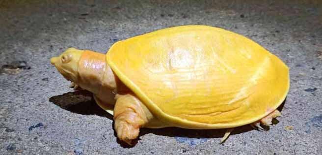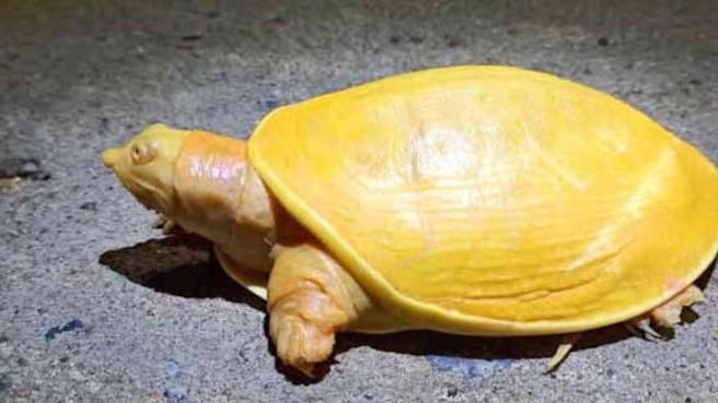 “Todo el caparazón y el cuerpo de la tortuga es de color amarillo. Esta es una tortuga muy rara, nunca he visto una como esta”, aseguró el guardabosques Bhanoomitra Acharya a la agencia ANI.