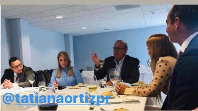 La foto publicada por la periodista de Telemundo, Tatiana Ortiz, y a quien se le confirmó también la legitimidad de la imagen, se puede apreciar a la mandataria junto al presidente de la Asociación de Hospitales, Jaime Pla, sentados en una mesa junto a otras personas.