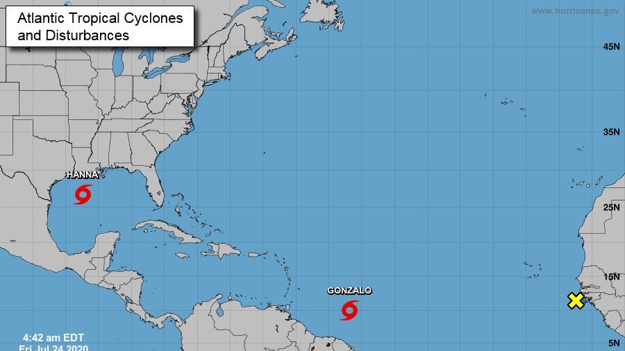Hanna batió un récord al convertirse en la octava tormenta con nombre más temprana del Atlántico, según el investigador de huracanes de la Universidad Estatal de Colorado Phil Klotzbach. La anterior era Harvey, el 3 de agosto de 2005, tuiteó Klotzbach.