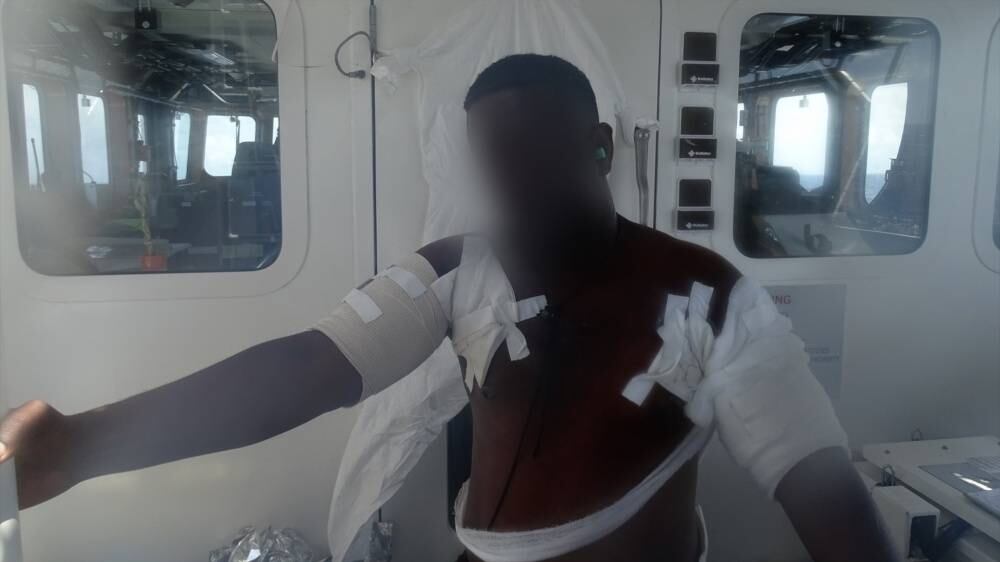 El Escampavía de la Guardia Costera Joseph Doyle (WPC-1133) llegó al área y recibieron al hombre rescatado por la tripulación del Coral Energy. El hombre les dijo a las autoridades que pudo mantenerse a flote agarrado de dos contenedores de gasolina que le ocasionaron quemaduras en su cuerpo. Además, dio cuenta de que había otras 12 personas en la embarcación que se hundió el pasado lunes.
