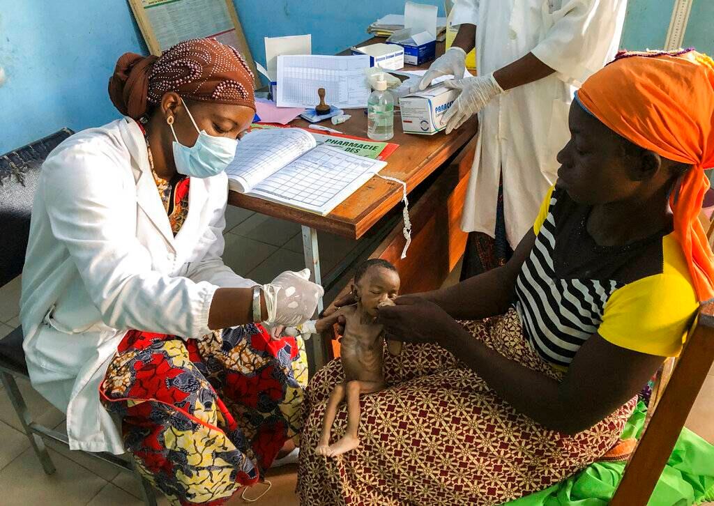 El hambre acecha la vida de Haboue Solange Boue, una niña pequeña de Burkina Faso que perdió la mitad de los 2,5 kilos (5,5 libras) que pesaba en apenas un mes. Las restricciones por el coronavirus obligaron a cerrar los mercados, y su familia vendió menos vegetales. Su madre estaba demasiado desnutrida como para amamantarla.