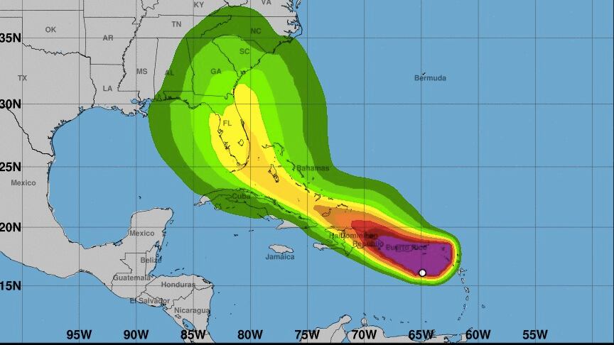 En la ruta pronosticada, el sistema pasará al sur de Puerto Rico más tarde esta noche, cerca o sobre la Española el jueves, cerca del este de Cuba y el sureste de Bahamas el viernes, y se acercan al el noroeste de Bahamas y el sur de Florida el viernes por la noche.