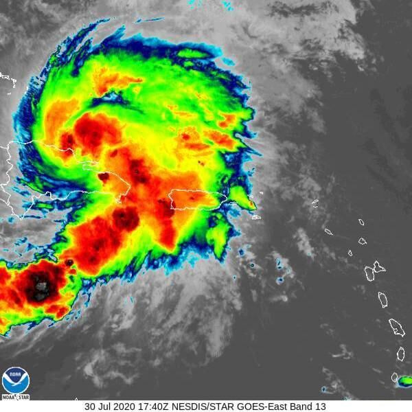 El Centro Nacional de huracanes ubicó la tormenta en la latitud: 18.9 grados Norte y la longitud: 69.8 grados Oeste. Los vientos son de 60 millas por hora. El movimiento del sistema es al noroeste a 20 millas por hora.