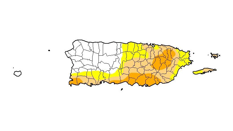 Al 21 de julio el 24.01 porciento de Puerto Rico estaba bajo la categoría de sequía severa. Al 28 de julio se redujo a 17.33 porciento, para una baja de 6.68 porciento.