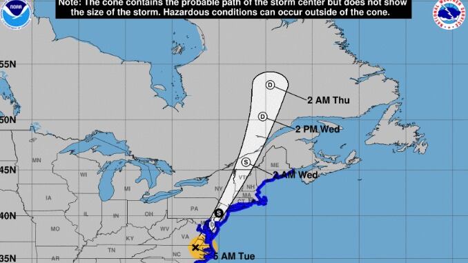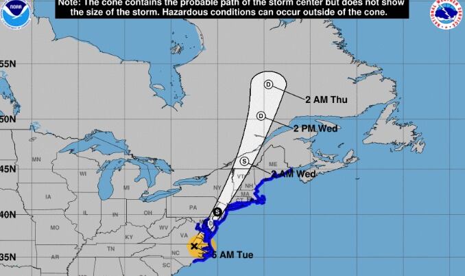 “No creemos que vaya a haber un gran debilitamiento, seguimos pensando que va a haber vientos muy fuertes y racheados que afectarán a gran parte del Atlántico medio y al noreste durante un día o dos”, añadió agregando que las lluvias también serán un problema.