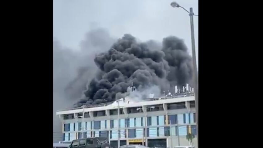 El edificio, que ubica en la avenida Ponce de León, aparenta estar bajo incendio en el área de la azotea.