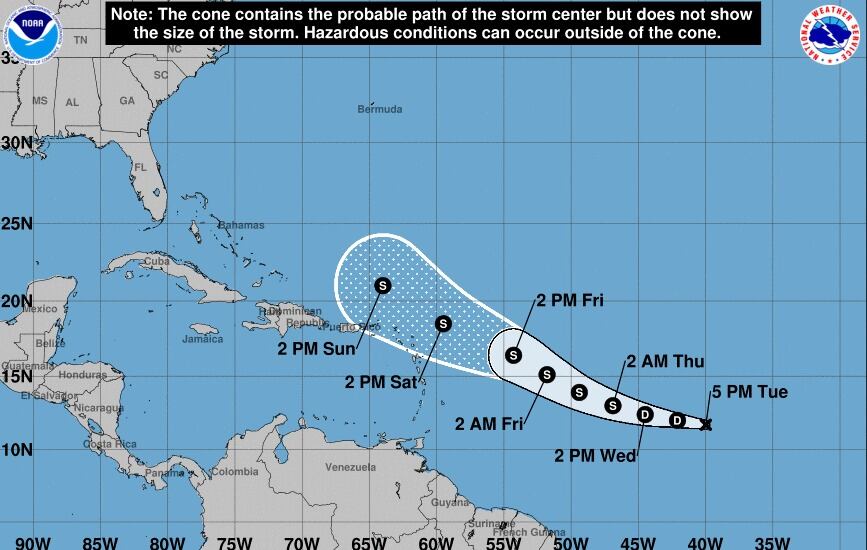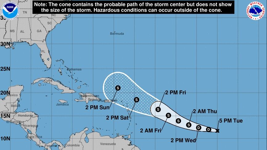 Según la proyección del CNH, el fenómeno atmosférico estaría pasando al noreste de Puerto Rico durante el domingo próximo.