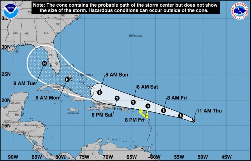 La vigilancia de inundaciones entrará en vigor desde el sábado por la mañana hasta el domingo por la noche. La depresión tropical trece, actualmente está ubicado a unas 750 millas al este-sureste de las Islas de Sotavento, se espera que fortalezca a una tormenta tropical en algún momento más tarde este jueves. Las condiciones climáticas se deteriorarán a medida que este ciclón tropical se acerque al área desde el viernes por la noche hasta el sábado. La amplia zona de lluvias y tormentas eléctricas asociadas con él probablemente producirán períodos de fuertes lluvias durante el próximo fin de semana.