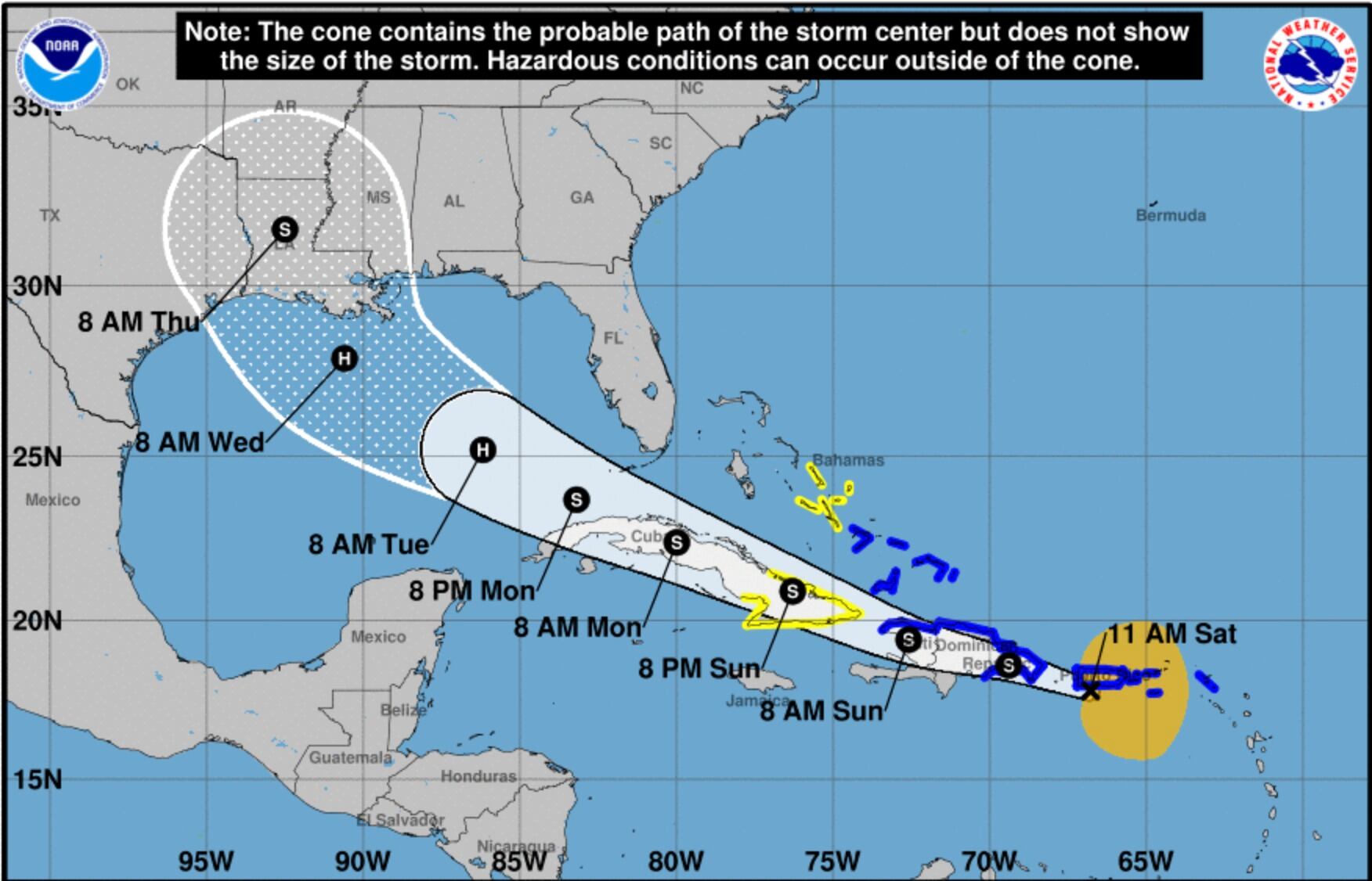 “En el pronóstico, el centro de Laura se moverá cerca de Puerto Rico esta mañana y cerca o sobre la Española en esta tarde, para acercarse al este de Cuba mañana, domingo”, expresó la agencia en el boletín.