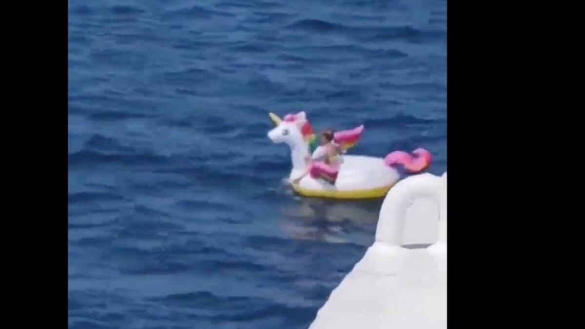 Encuentran a niña de 4 años en un flotador de unicornio en alta mar