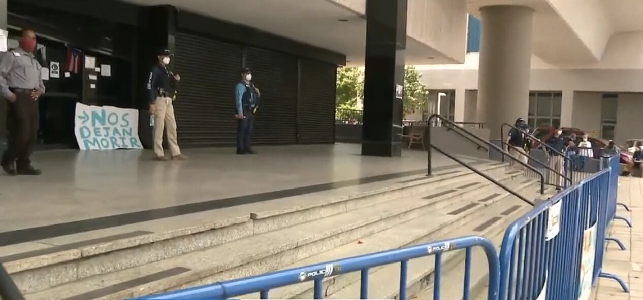 Mientras la temperatura sigue subiendo en el Departamento del Trabajo por la lentitud en el pago del seguro de desempleo y las personas siguen llegando a protestar frente a la agencia, la Policía de Puerto Rico estableció un perímetro que alejó las manifestaciones de la sede central de la dependencia en Hato Rey.