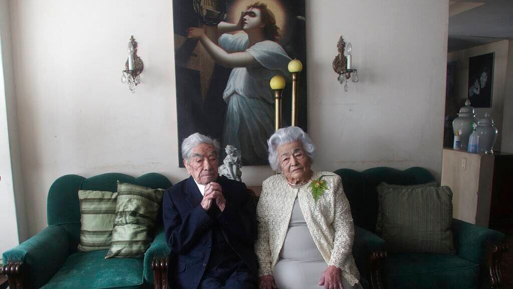 Julio Mora de vez en cuando le roba un beso a su esposa Waldramina Quinteros, lo cual podría parecer ordinario si no fuera porque él tiene 110 años y ella 104. Ambos ecuatorianos están lúcidos y tienen buena salud, pero se sienten un poco tristes porque extrañan reunirse con su familia, lo que ahora no es posible por la pandemia de coronavirus.