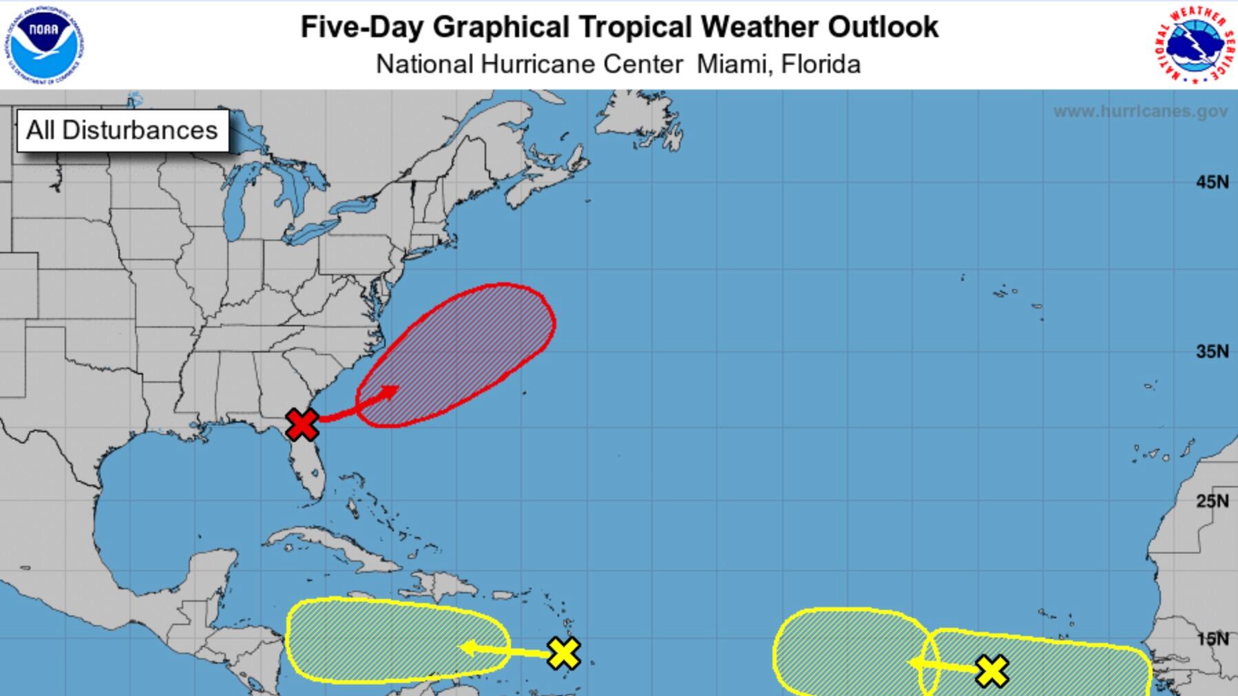 El otro disturbio está al norte de Florida y se dirigirá hacia las aguas del Atlántico, según Monzón.