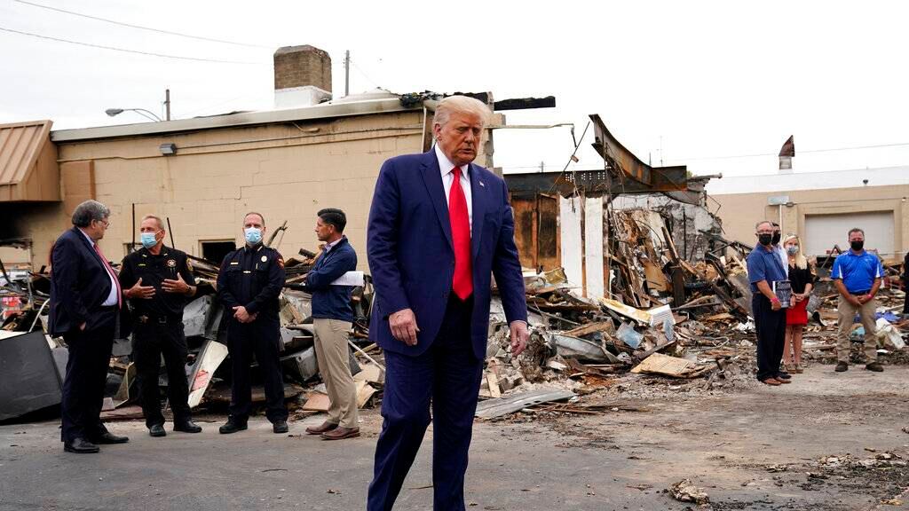 Poco después de llegar a la ciudad —una visita que el mandatario realizó pese a las objeciones de los mandatarios locales y estatales, Trump recorrió los restos calcinados de una cuadra asediada por la violencia y el fuego. Con el olor del humo aún en el aire, habló con los propietarios de una tienda de siglos de antigüedad que había sido destruida y siguió vinculando la violencia con los demócratas, responsabilizando a aquellos a cargo de Kenosha y Wisconsin, y planteando advertencias apocalípticas si sus opositores llegan a la Casa Blanca.