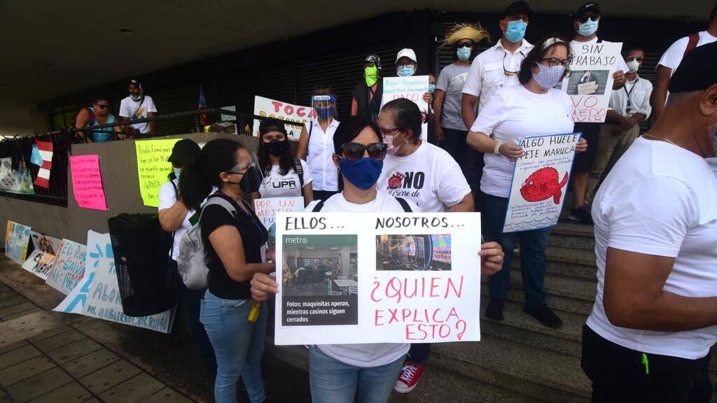 Un centenar de empleados de los 16 casinos de Puerto Rico realizaron hoy una demostración frente al Departamento del Trabajo reclamando la reapertura de su lugar de empleo y denunciando la falta de pagos por desempleo a la que tienen derecho.