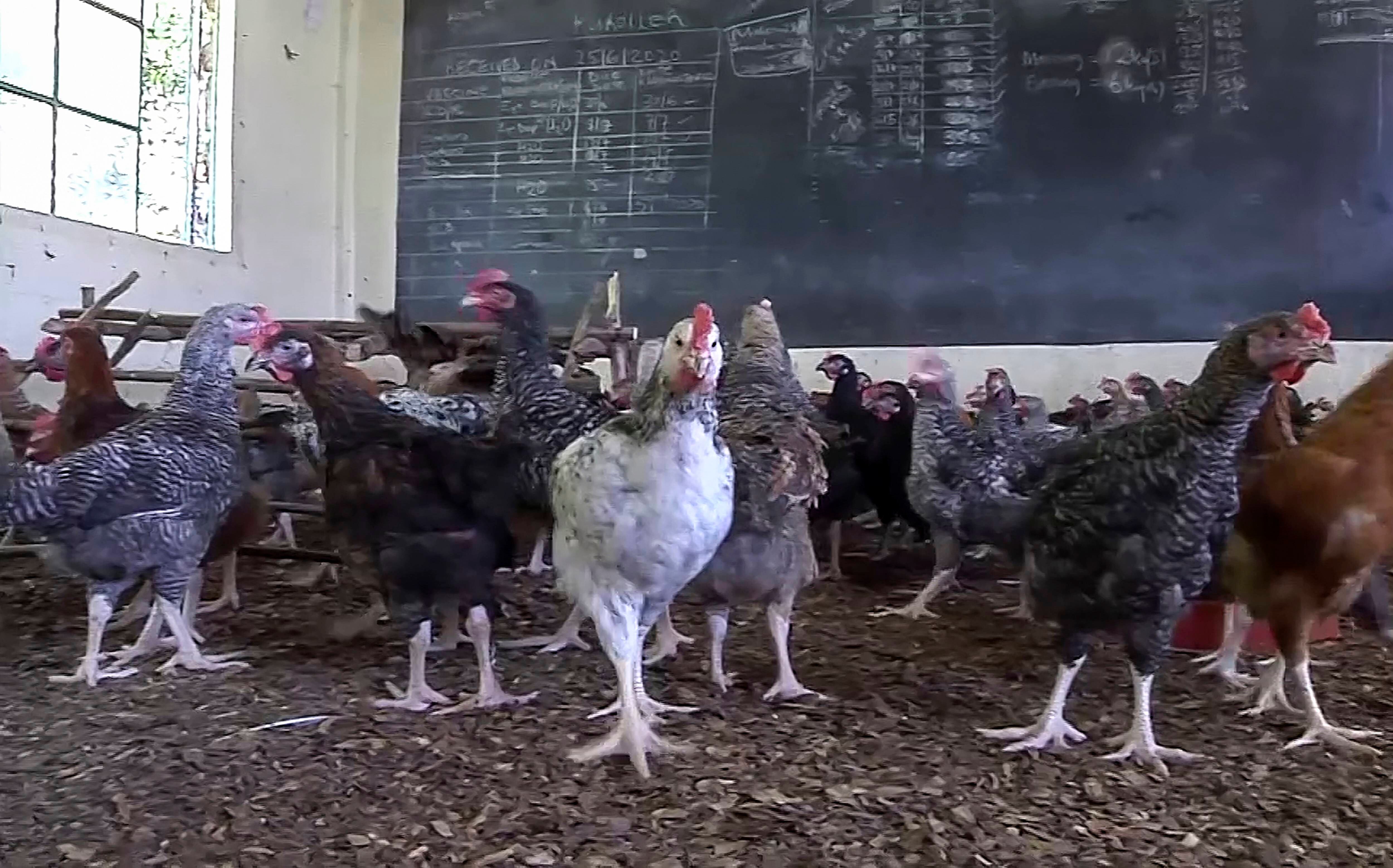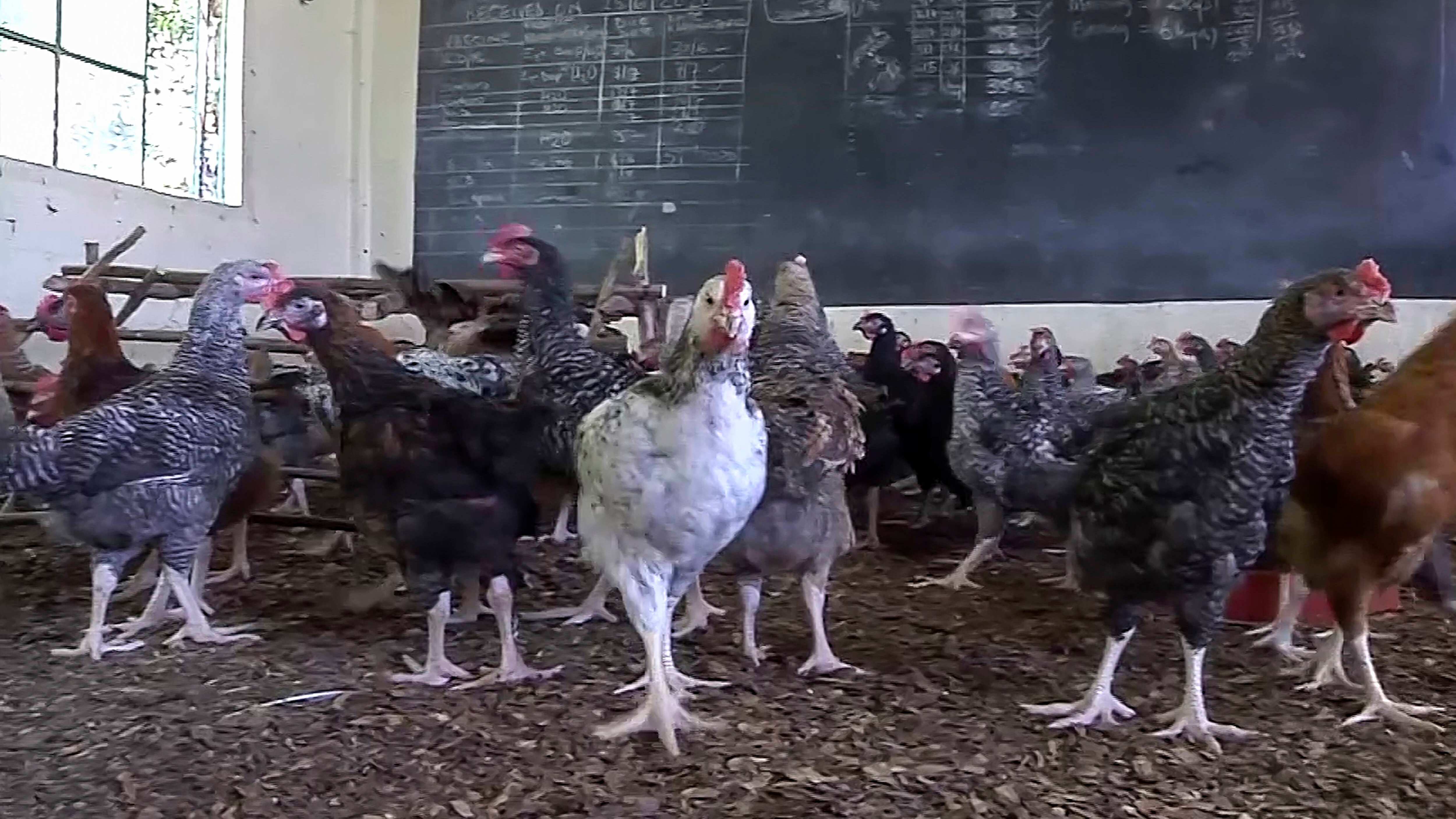 Las pizarras muestran ahora sus notas sobre la cría de pollos. Las fechas de desparasitación y los datos sobre su alimentación han reemplazado a las tables de multiplicar.