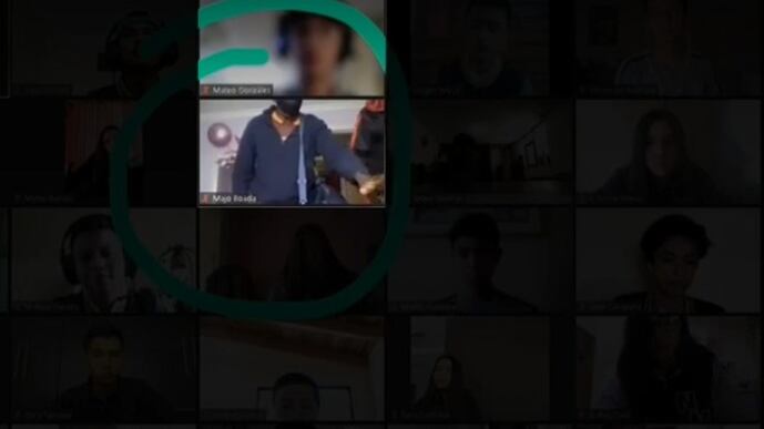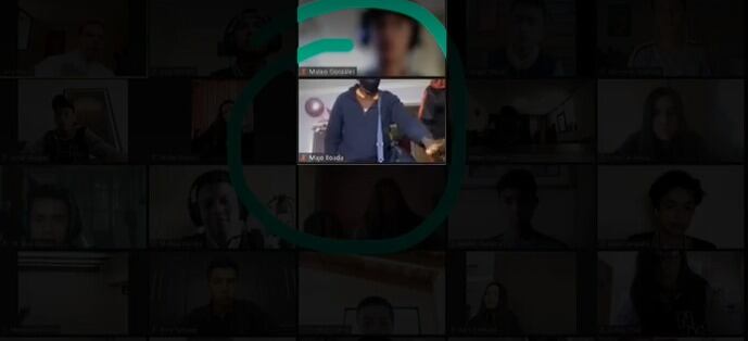 Mientras tanto, el docente seguía explicando las partes de los dedos y las articulaciones, sin advertir que a su alumna, que tenía la cámara encendida, la estaban intimidando unos encapuchados.