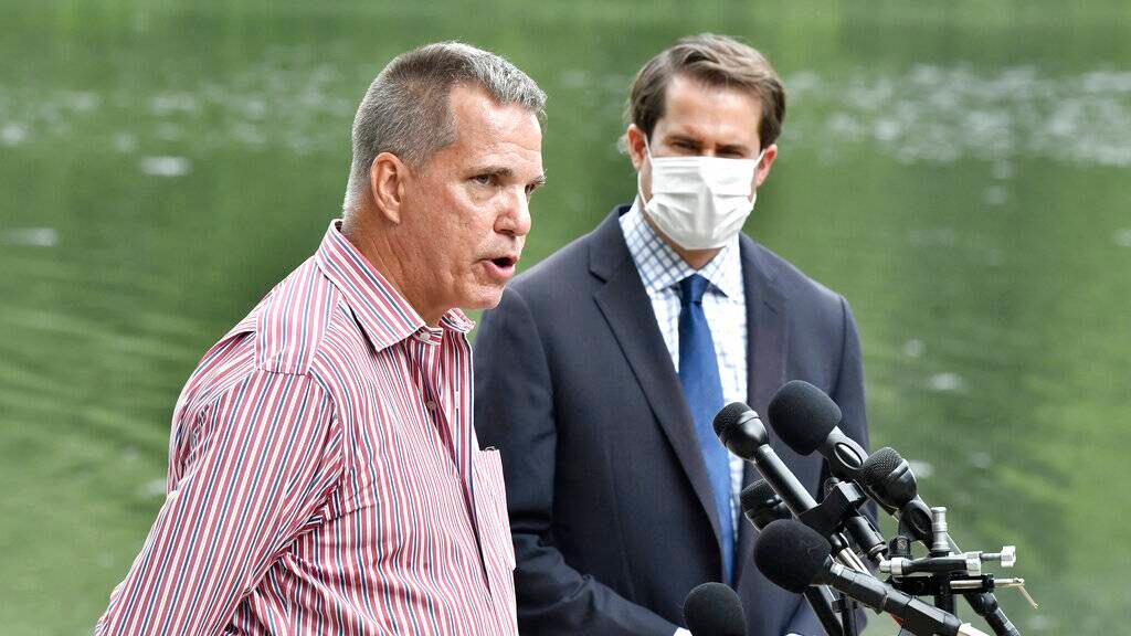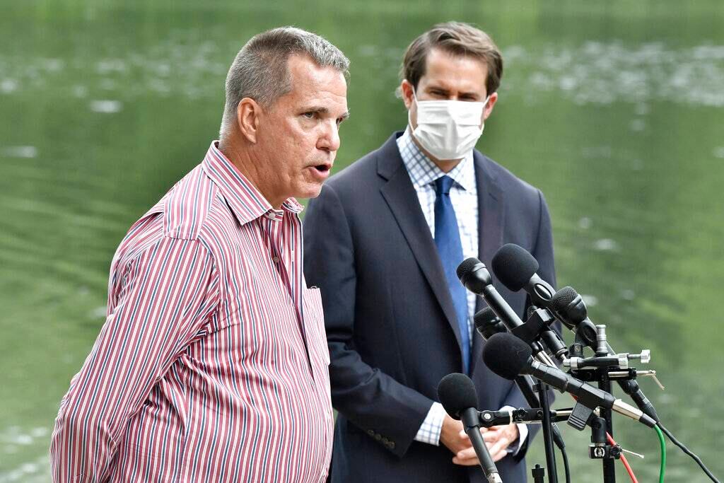 Los familiares del soldado de primera John Hart y del cabo Travis Desiato — ambos originarios de la localidad de Bedford y muertos en servicio en Irak — hablaron en una conferencia de prensa frente al Puente Hart-Desiato, dedicado en honor a ambos en 2018.