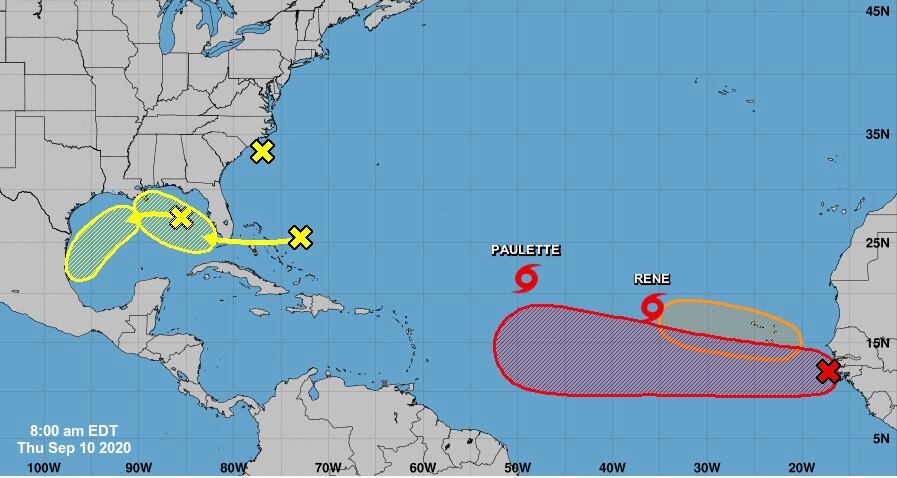 Mientras tanto, las tormentas tropicales Paulette y Rene continúan su paso por el Océano Atlántico central y se vislumbra que ambos sistemas se muevan hacia el norte por lo que no representan amenaza para tierra firme.