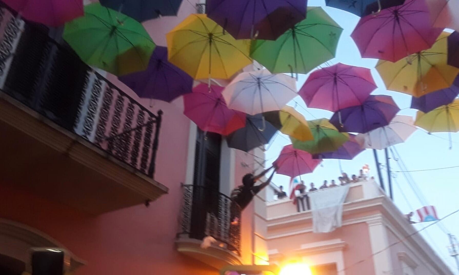Las sombrillas fue una iniciativa realizada por la oficina de la primera dama bajo la administración del exgobernador Ricardo Rosselló, donde Beatriz Rosselló colocó las mismas en la Placita de Santurce.