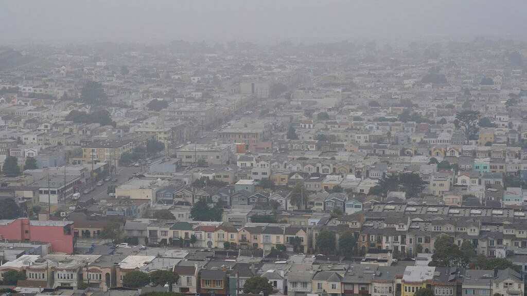 Trump llegó al aeropuerto McClellan de Sacramento en medio de un poderoso olor a humo de los incendios que arden a unos 144 kilómetros (90 millas) de distancia.