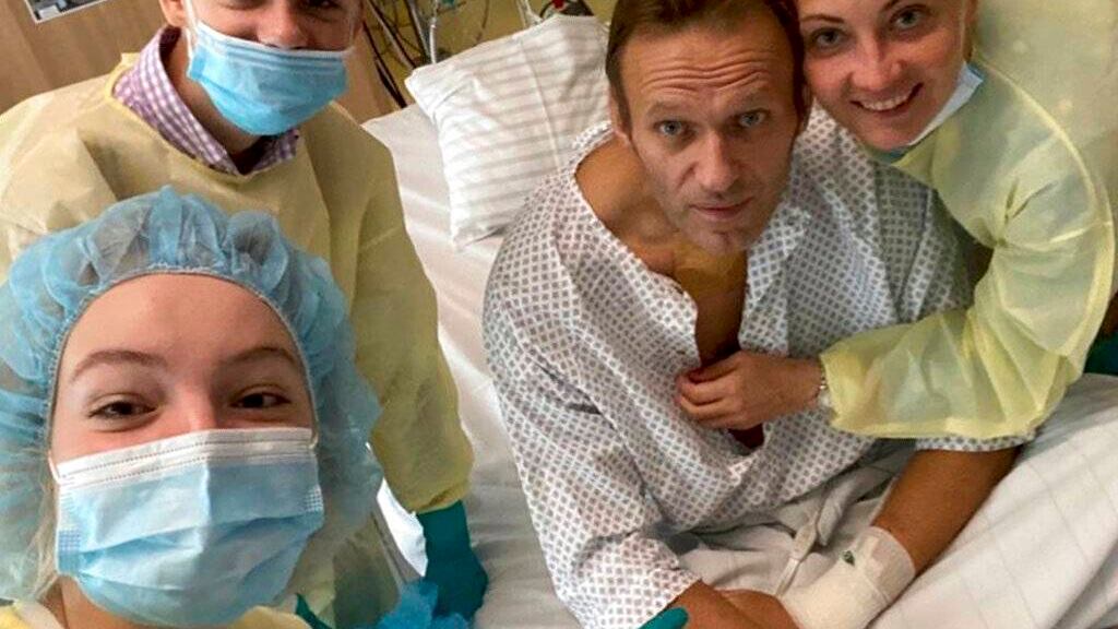 En la foto se ve a Navalny sentado en una cama con bata de hospital, abrazado por su esposa, Yulia, y junto a sus dos hijos. El texto que acompañaba a la imagen mostraba su habitual sentido del humor sarcástico.