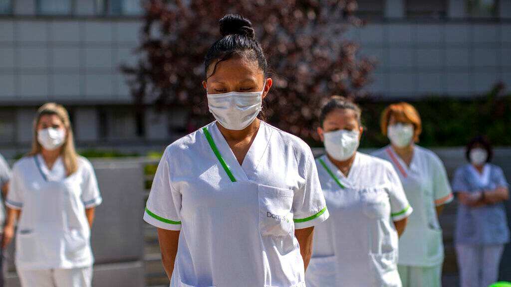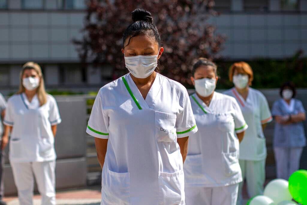 En la región de Madrid, trabajadores de salud realizaron el martes pequeñas protestas a las puertas de centros de salud y clínicas menores en demanda de más recursos para tratar a los pacientes con COVID-19.