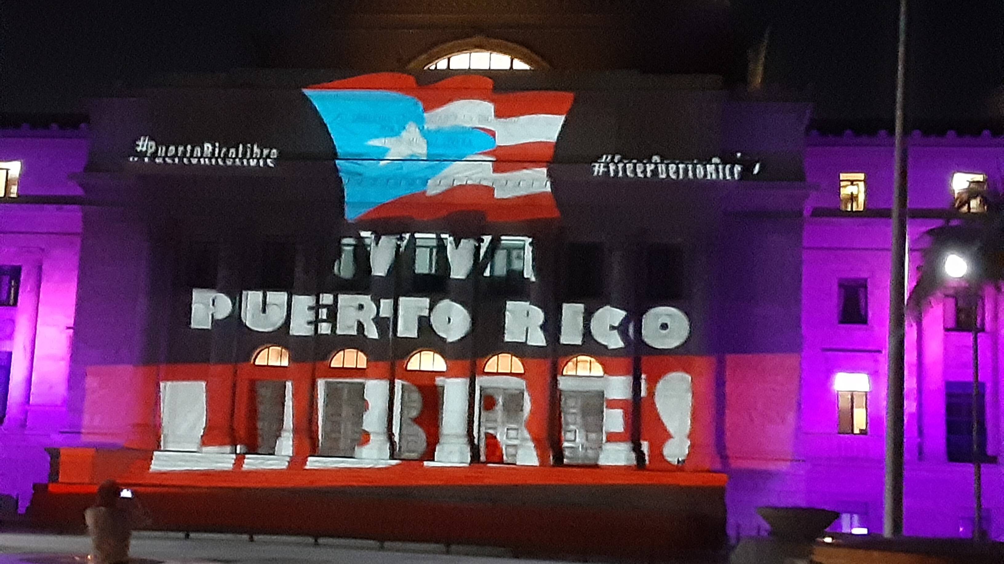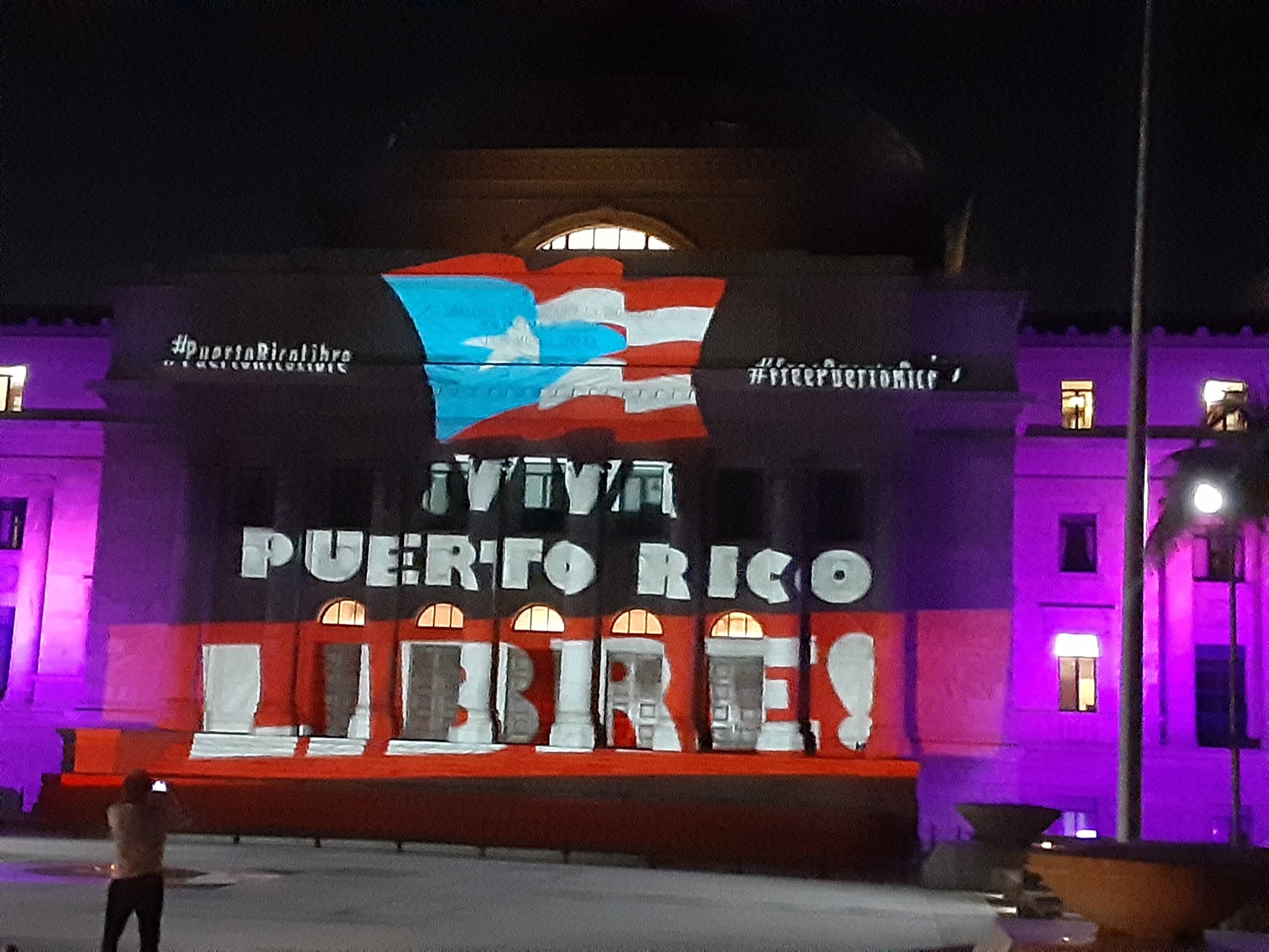 Durante las pasadas noches, se han estado proyectando imágenes en paredes de edificios que representan el poder político y económico en la isla como el capitolio, el Banco Popular en El Viejo San Juan y las oficinas de la Junta.