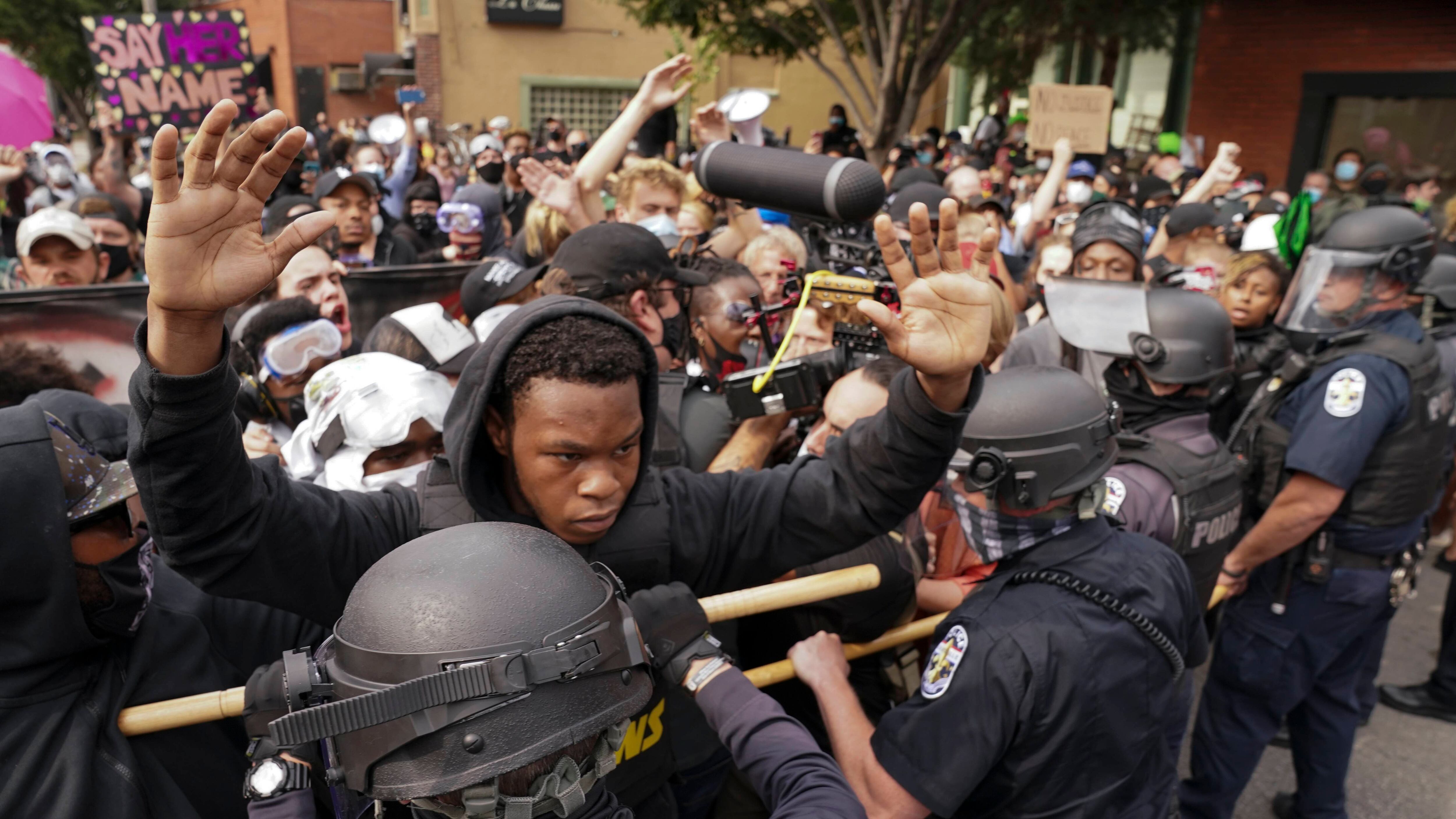 “Pienso que vamos a superar esto”, dijo Jones mientras manifestantes comenzaban a llegar al parque apodado Plaza de la Injusticia. “Mientras continuemos siendo fuertes y luchemos por lo mismo, podemos conseguir algo de justicia”.