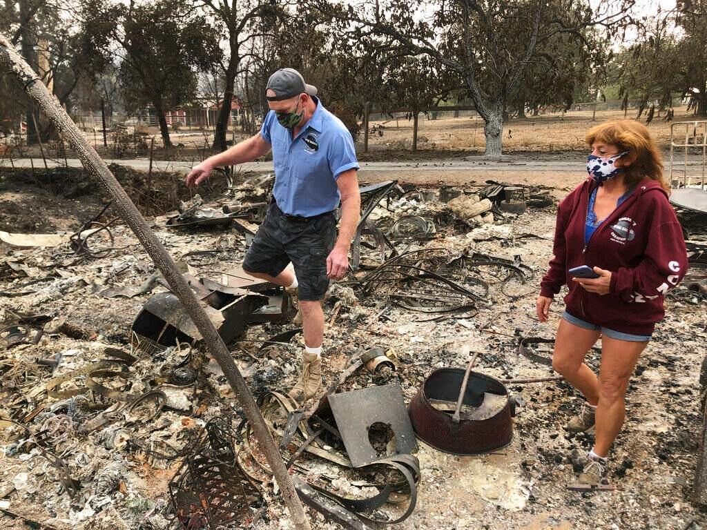 Nikki y Kevin Conant regresaron el miércoles a su hogar en un área vinícola de California y solamente encontraron los restos calcinados de su casa y de su negocio de readaptación de barriles de vino.