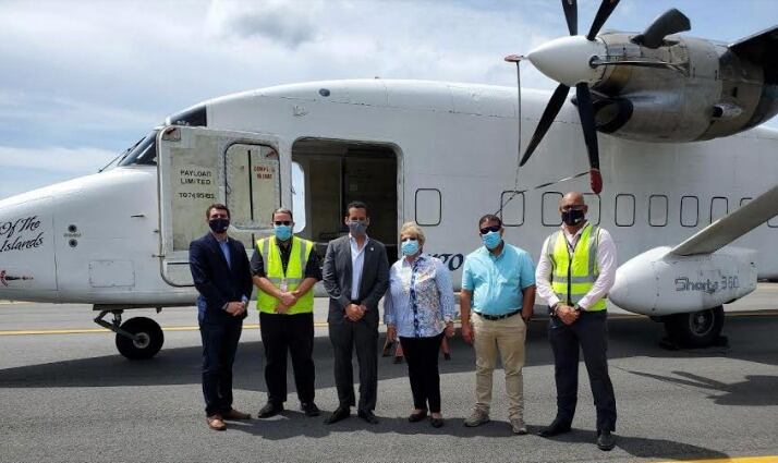 Para celebrar la ocasión, una aeronave de Flamenco Cargo recibió los tradicionales chorros de agua de las unidades de rescate del aeropuerto a su paso por la ante-pista.