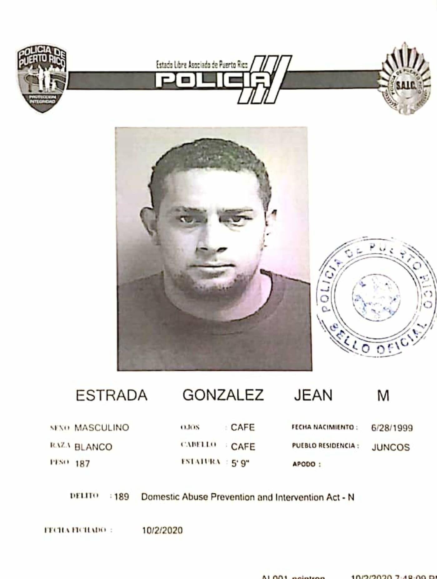 De acuerdo con el informe policiaco, las autoridades arrestaron a Jean M. Estrada González, de 21 años, contra quien pesaba una orden arresto con fianza de $50,000.