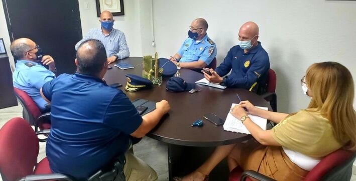 El alcalde de Naguabo, Noé Marcano Rivera se reunió con la alta oficialidad de la Policía de la Región de Humacao , entre estos el teniente Juan Cáceres, para discutir la problemática de exceso de visitantes sin guardar las medidas de seguridad en el malecón de dicho municipio.