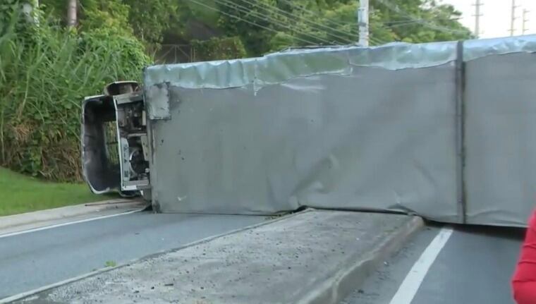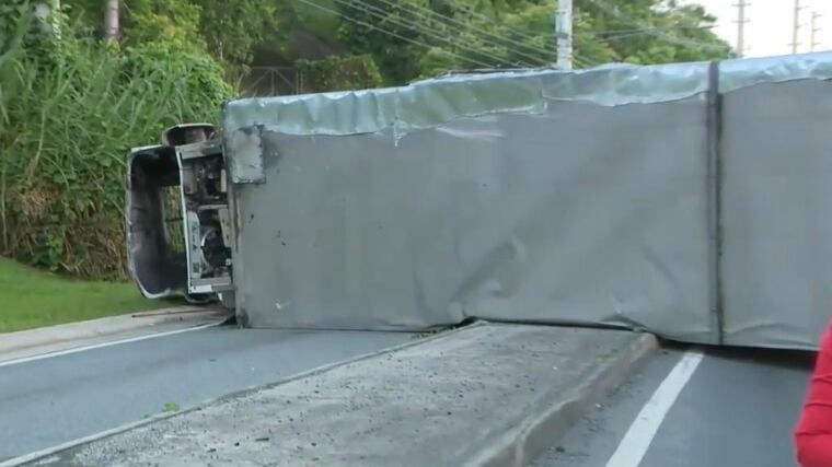 Un camión se volcó a eso de las 4:35 de la madrugada del jueves, en la carretera #1 salida al expreso Martínez Nadal, en dirección a Caguas, informó la Policía.