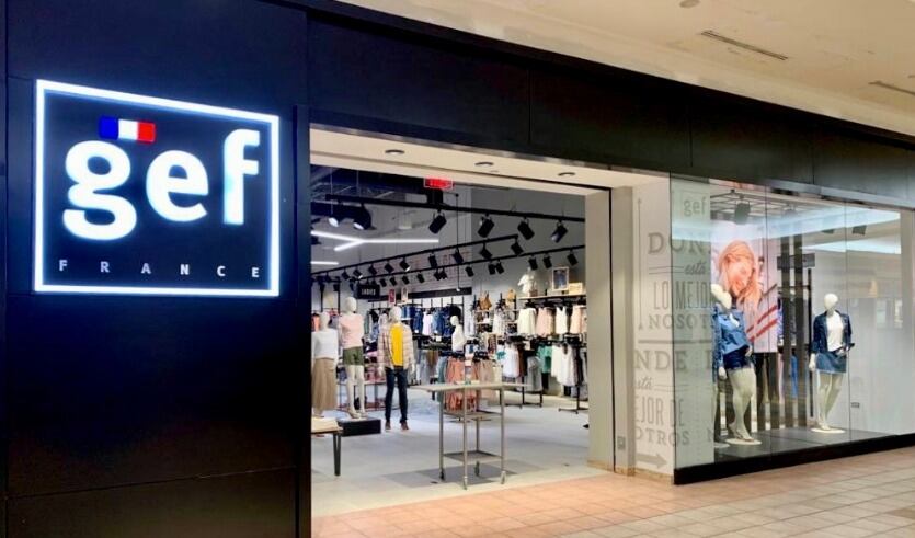 Gef France, a su vez, es una cadena de origen colombiano que se especializa en ropa moderna y casual para mujeres, hombres y niños de todas las edades. Los amantes de la moda encontrarán una gran selección de ropa, calzado y accesorios. La tienda acaba de abrir un espacio de aproximadamente 3,389 pies cuadrados en el primer nivel del mall, pasillo del atrio central a Old Navy.