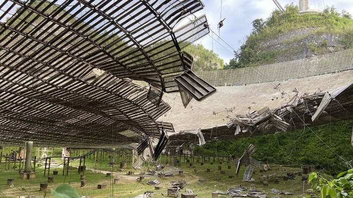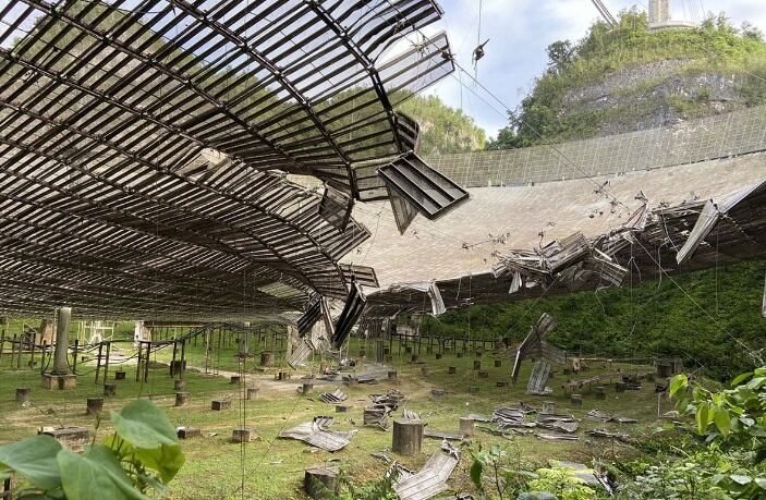 El Observatorio de Arecibo (AO), uno de los más grandes y poderosos del mundo, se desconectó el 10 de agosto cuando un cable auxiliar se rompió y dañó el plato reflector y el Domo Gregoriano.