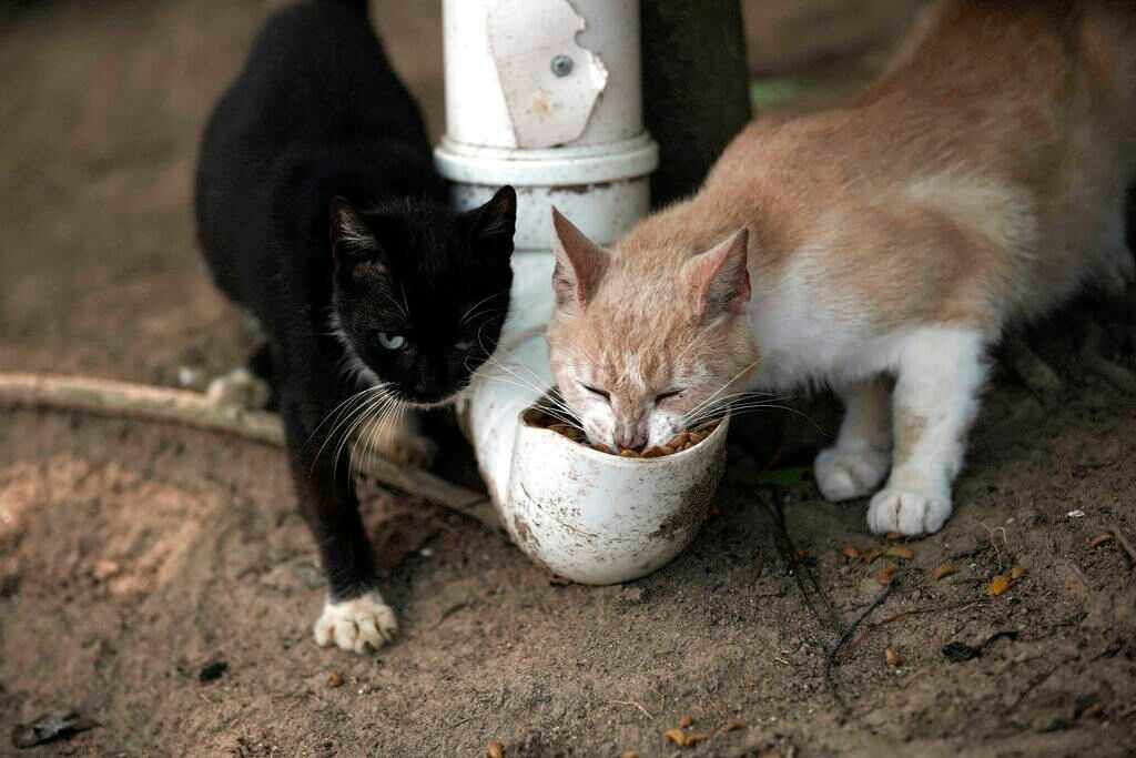 A lo largo de los años, los pescadores han arrojado entrañas de peces y capturas descartadas en la isla, mientras que otras personas dejaban envases con agua y comida para gatos comprada en tiendas. Eso ayudaba a los centenares de felinos en la isla a alimentarse, especialmente a los gatos recientemente dejados, que carecen de las habilidades de sus similares nacidos en la naturaleza y que trepan a los árboles para saquear nidos de aves.